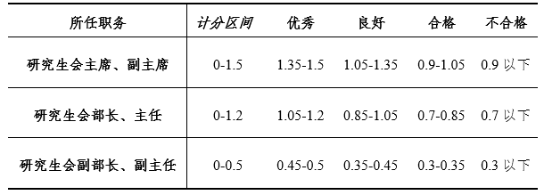 根据《资安院奖助学金评选办法》,对表现优异、尽职尽责的学生干部,在综合测评及国奖、校奖、院奖测评时实行加分。具体标准如下: