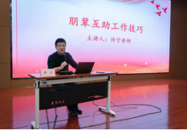 心理健康教育中心马晓虹老师、研究生学生干部法学院邓皓迪同学分别为同学们带来《优质班长养成记》、《朋辈互助工作技巧》、《学生干部情绪管理与压力应对》、《学生干部工作经验分享》等主题讲座,为班长工作开展提供了宝贵经验,同时提升了同学们的责任意识,使他们能够更好地与班级同学进行沟通,推动研究生班级管理及朋辈互助工作进一步发展。
