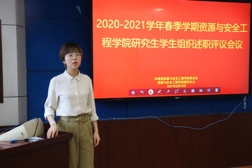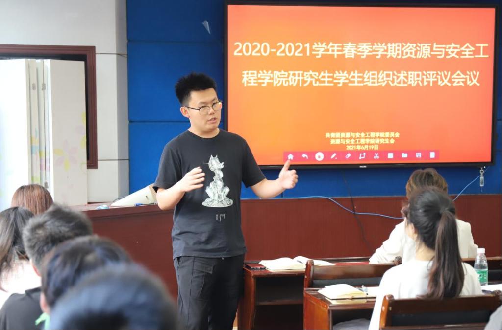 于2021年6月19日下午15时在采矿楼224会议室组织开展本学期研究生学生组织述职评议会议,旨在全面了解和监督研究生学生组织本学期的学生工作,以促进学院各方面建设。参与本次会议并进行述职的学生组织有资安院研究生会、朋辈心理互助会研究生部、新媒体中心研究生部、研究生双创实践部,共青团百合小说
