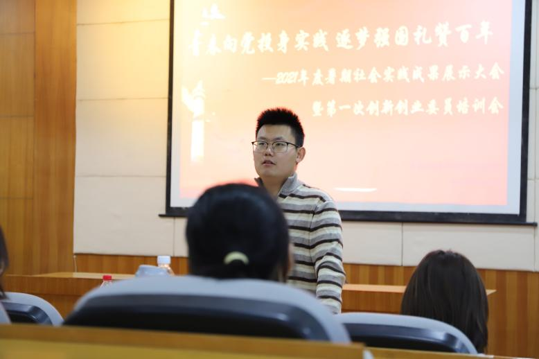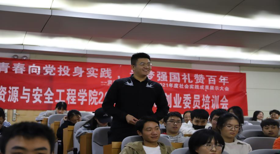 “青春向党投身实践,逐梦强国礼赞百年”——2021年度学生暑期社会实践成果展示大会暨第一次创新创业委员培训大会在校本部采矿楼T201顺利召开。此次活动共有八支社会实践团队进行展示,邀请了学院分团委书记孙瀚老师以及2021级辅导员李嘉老师来对各团队的实践情况进行点评指导。