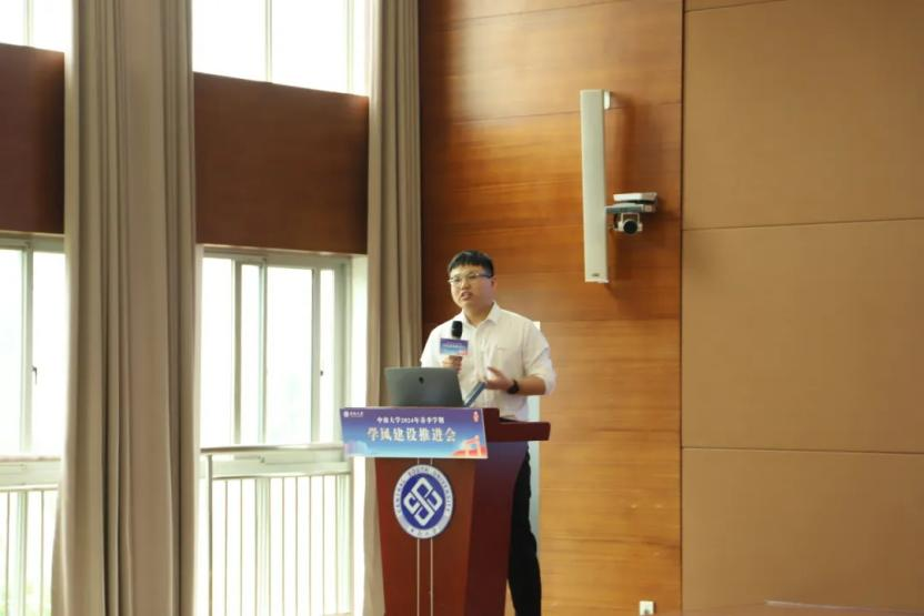 辅导员、学风建设专干李嘉老师受邀作为学风建设典型学院代表进行经验分享。李嘉老师从学风建设难点、学业动力提升和学风建设措施等三个方面,全面介绍学院学风建设和学业辅导的工作概况。