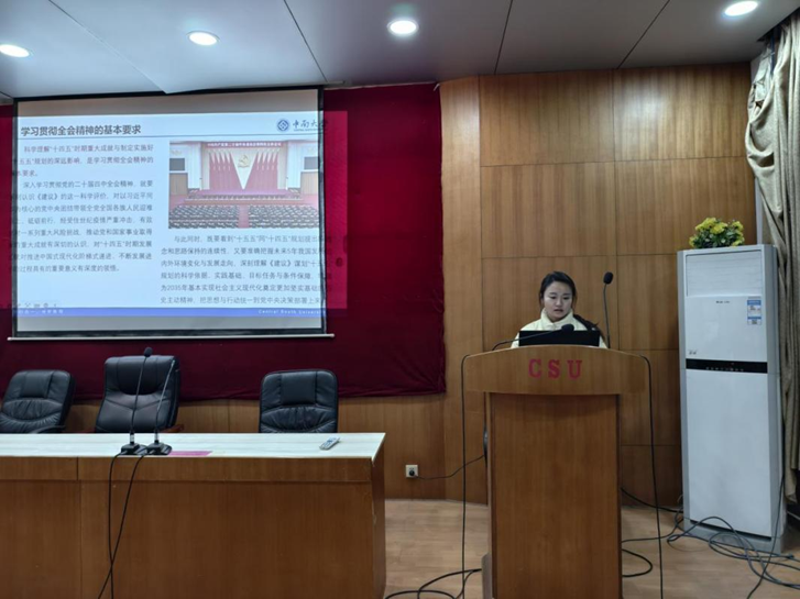 于采矿楼T301开展关于党的二十届四中全会精神专题学习研讨会,研究生团学组织全体成员参与学习研讨,王卓娅同学通过领学引导大家将学习成果转化为奋进新征程、建功新时代的实际行动。