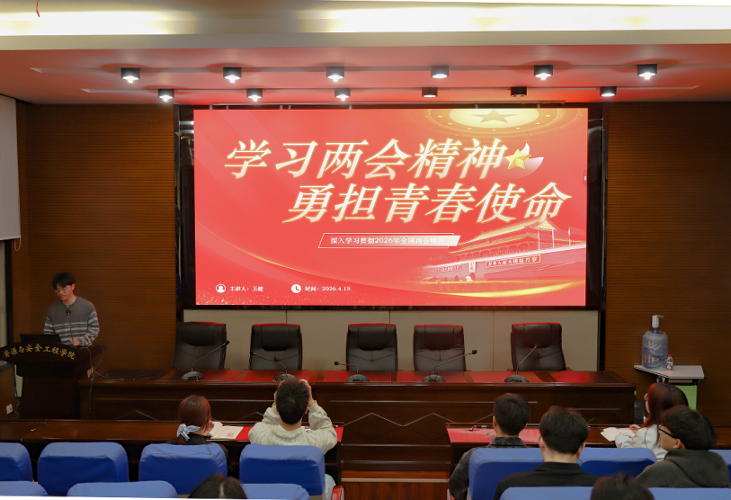 2026年4月15日,学院在采矿楼T301组织开展2026年全国两会精神学习,研究生团学组织全体成员参会,领学员王健同学围绕科技创新、绿色发展、教育强国等两会核心内容展开领学。与会成员纷纷表示要贯彻落实会议精神,在各自领域贡献力量。
