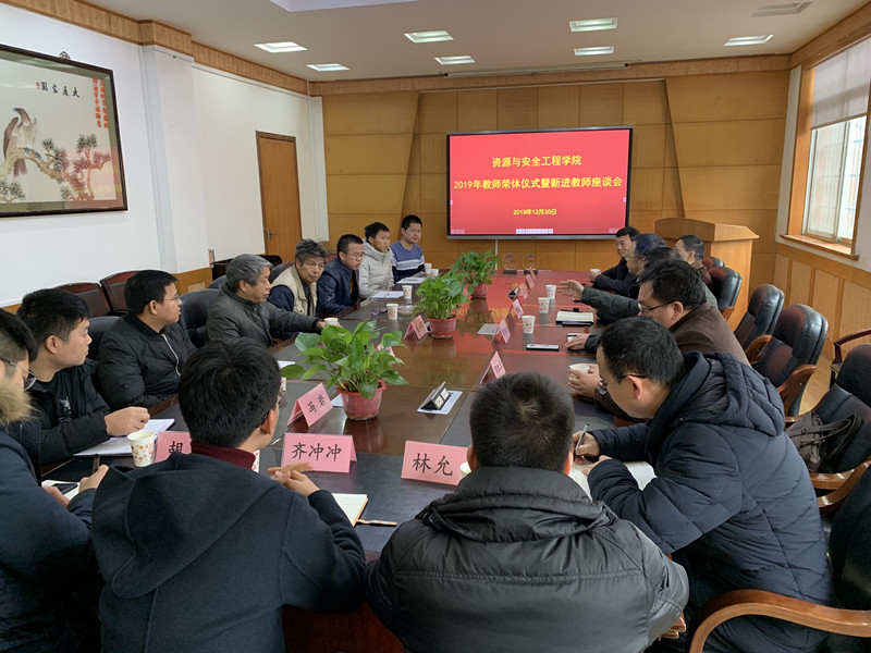 2019年退休教师荣休暨新进教师座谈会在采矿楼222举行。两位退休教师、8位新进青年教师以及学院领导欧旭理、罗周全、马国荣、李孜军、邓红卫出席此次座谈会。会议由罗周全院长主持。