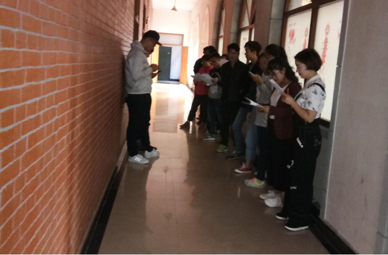 秉承公平公正公开的原则,同时为了让同学们深入体会角色的内心世界,更好地演绎本部心理短剧,本次选拔创新性采用分组的面试方式,将20名候选演员,按照所饰演的角色分成两人一组表演。表演内容是剧本中的同一角色的不同场景片段。比赛正式开始之前,同学们都在紧张地进行台词背诵。