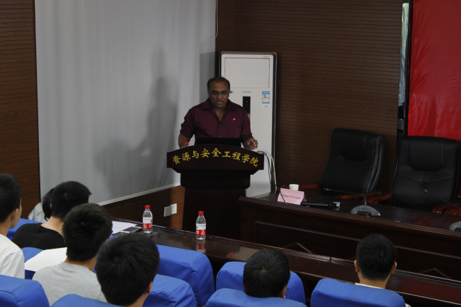 李杰林老师、林杭老师及各级硕士、博士生。Kulatilake教授以“Recent developments on rock mass stability investigations associated with surface and underground excavations in three dimensions”为题与在场师生进行了学术交流。