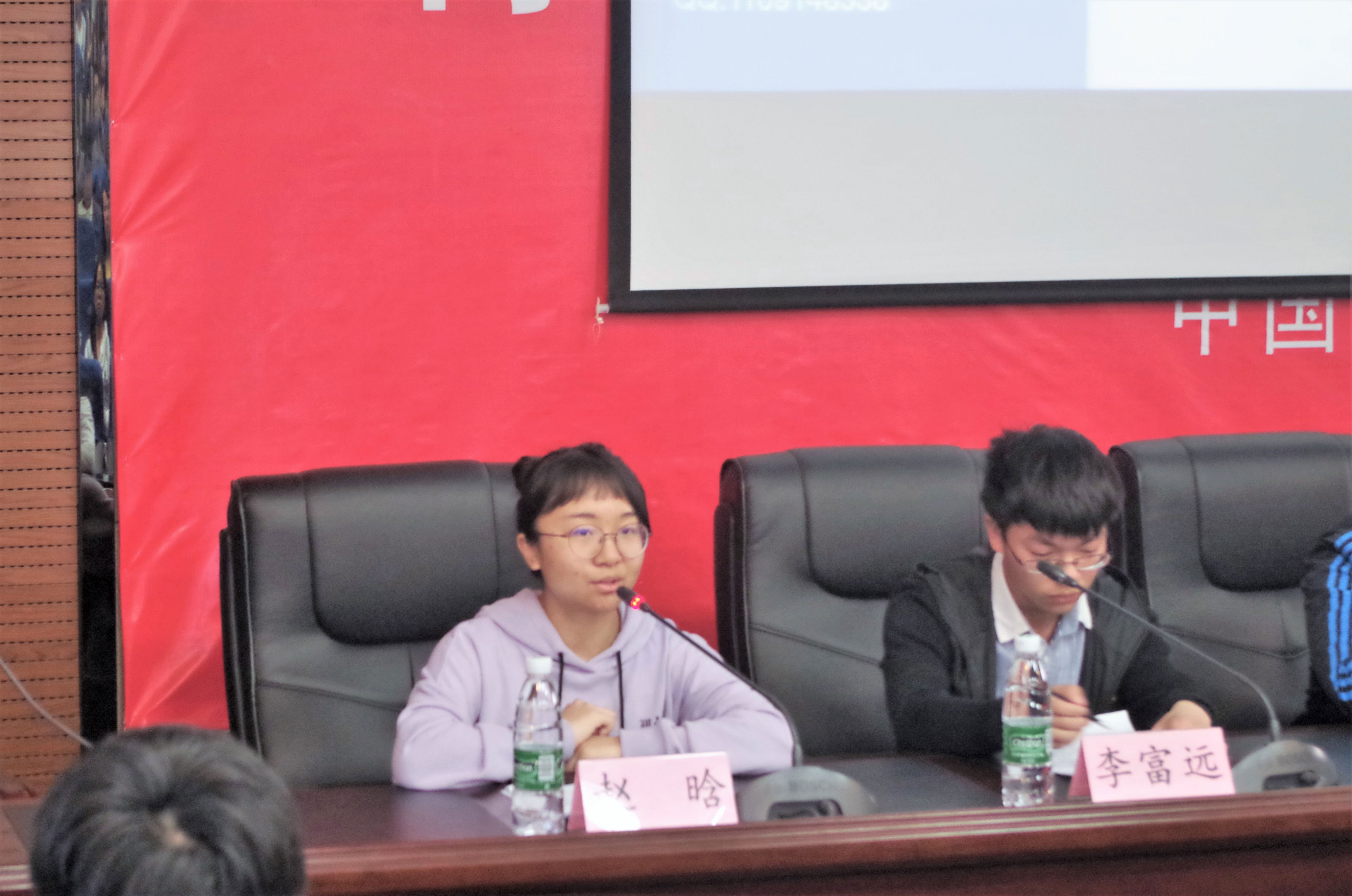 14级本科生辅导员朱玮出席会议并讲话,13级本科生李富远、赵晗、王钧晖、张灵莉、汪沛霖、郝记担任主讲人。