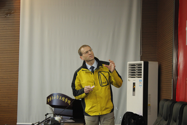 Heinz Konietzky教授系列讲座的主题包括“Spectrum of rock mechanical approaches”、“Stress field: measurements, data and numerical stress field modeling”、“Practical hints for numerical modeling in rock mechanics”、“Optimization and sensitivity for rock mechanical simulations”、“Waste repositories in clay formations”、“Induced seismicity”、“Micromechanical rock models”等。讲座主要介绍了他和他的团队在岩石力学基础与应用方面的进一步研究成果,内容涉及岩石力学的谱方法、应力场的测量、数据和数值应力场数学模型、数值模拟在岩石力学中的实用提示、粘土地层中的废物处置库、岩石细观力学模型研究和数值模拟等多个方面。参加讲座的教师及研究生人数累计达300余人次,与会师生围绕报告内容与Konietzky教授进行了热烈讨论。