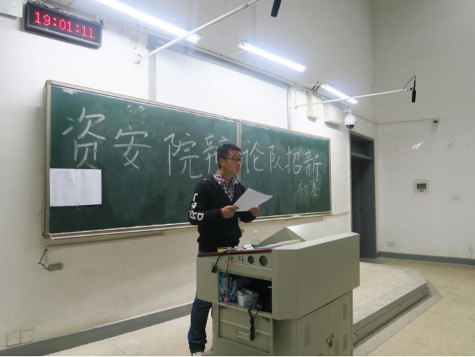 为丰富同学们的课余生活,给同学们展现自我、锻炼口才的舞台,同时向资安院辩论队输送新鲜的血液,11月12日晚,资安院辩论队招新大赛初赛于D座101室成功举行。赛事由百合小说