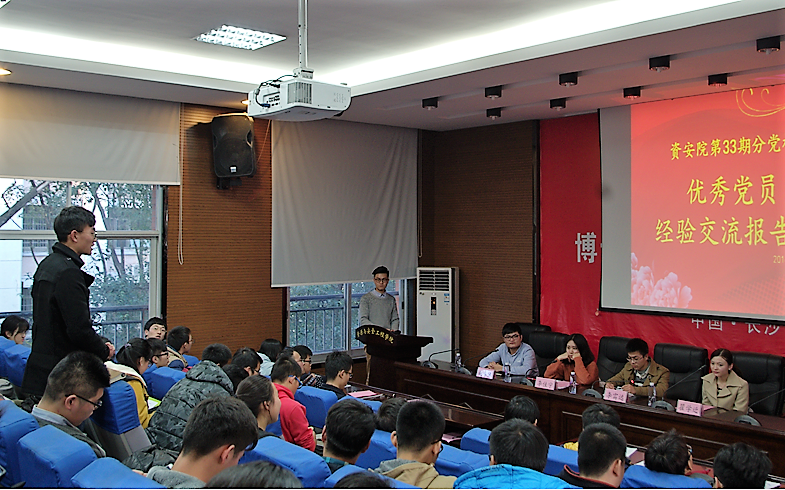 报告会上,瞿学迁同学向大家分享了自己入党的历程、社会实践经历以及学习的经验,鼓励大家积极学习,争取早日加入中国共产党这个大家庭。接下来是李富远同学,他与大家分享了自己自强不息的故事,作为一名优秀的中共党员,他总是严格要求自己,作为“自强之星”他努力学习并在这个基础上参与兼职、家教等活动丰富阅历、锻炼自己。李佳宁同学则针对创新创业项目与大家分享了自己独到的见解,她鼓励大家多多利用身边的资源,坚持自己理想,不断完善自己,让党性的光辉照耀人生。赵华涛同学对当前的形势与政策进行了分析,鼓励同学们坚定共产主义理想信念,践行诚实守信的原则,把握好自己的人生航标。报告会最后,研究生辅导员于谦老师做了总结发言,他用诙谐幽默、通俗易懂的语言给大家讲了“三观”的含义以及如何塑造符合核心价值观的“三观”。