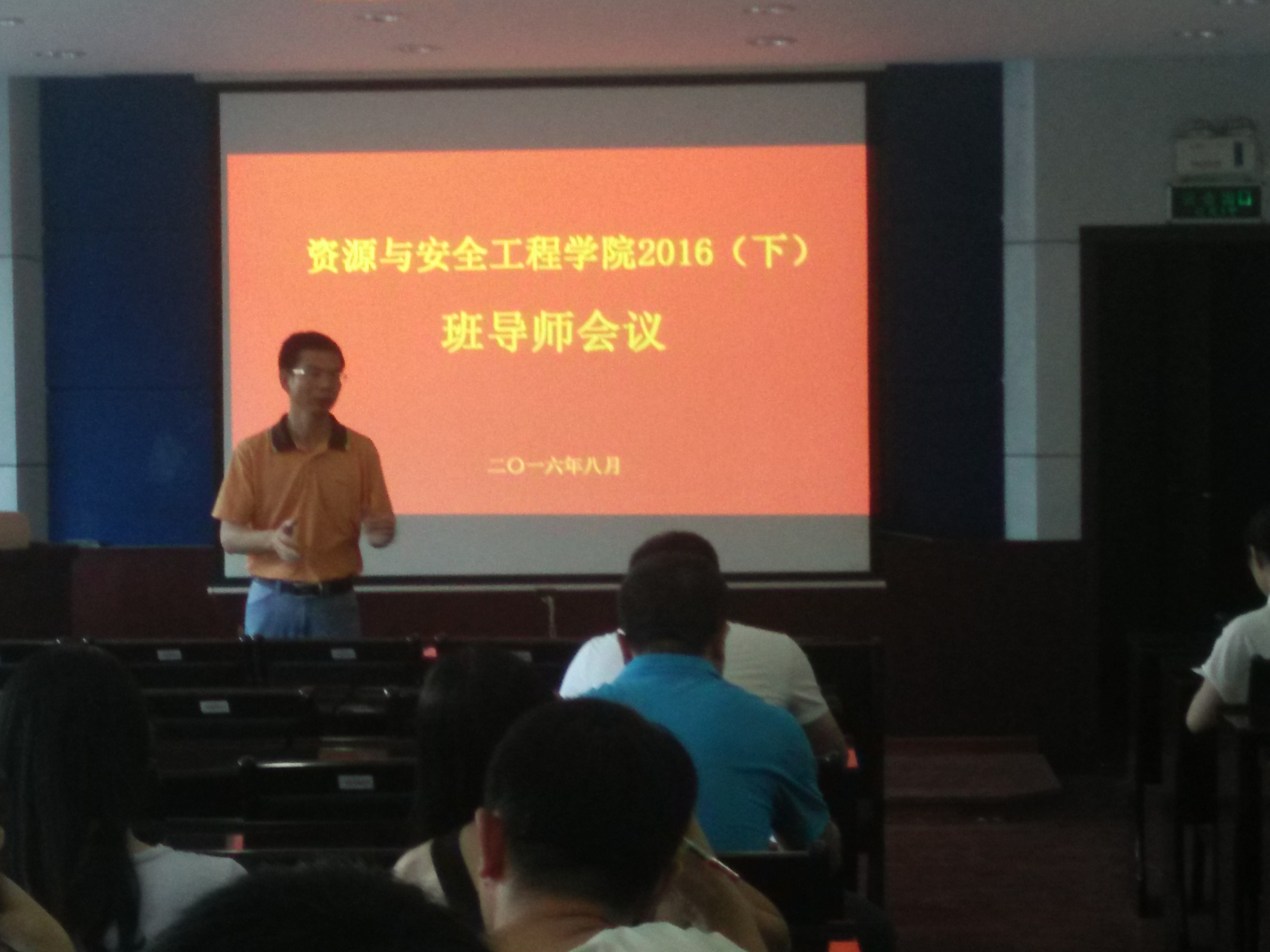 于采矿楼224召开2016级新生班导师工作会议。会议由学院孙胜副书记主持,学工办主任李欢老师、2016级辅导员侯霄峰老师以及2016级全体班导师参加了会议。