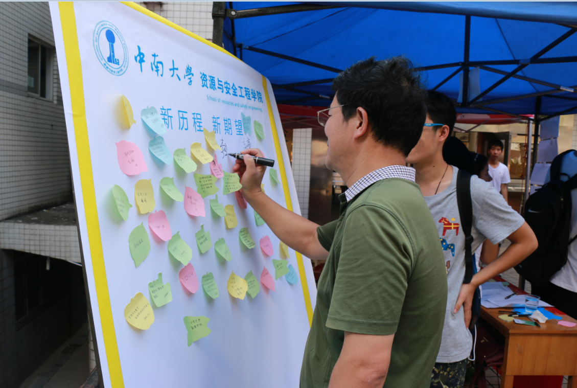 师生要共同努力、默契配合、脚踏实地地做好迎新工作,让2016级新生有宾至如归之感,尽快融入中南的大学生活。李书记还着重指出,院里对家庭困难、生活困难的同学会给予帮助,让他们尽早入学,开启新的大学旅程。孙书记在与迎新志愿者交谈中提到:希望迎新的志愿者们能够积极热诚地接待新生,带领新同学完成报道步骤、熟悉校园等基本任务,让同学们感受到新家的温暖,展现资安人的团结友爱精神。同时,院领导们也对迎新的老师及志愿者们热情周到的服务及所展现的资安精神给予了高度的赞扬,并在学院特色迎新墙上留下了对新生的期盼和希望。