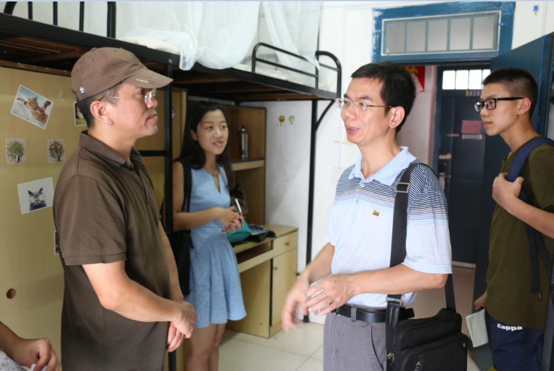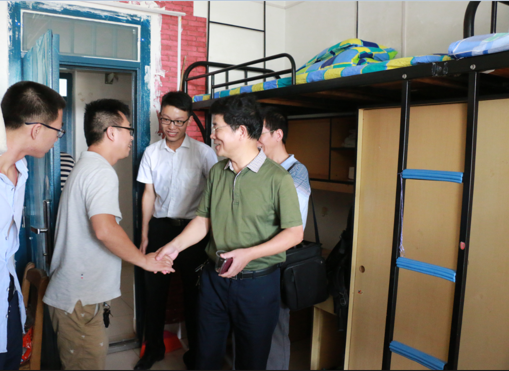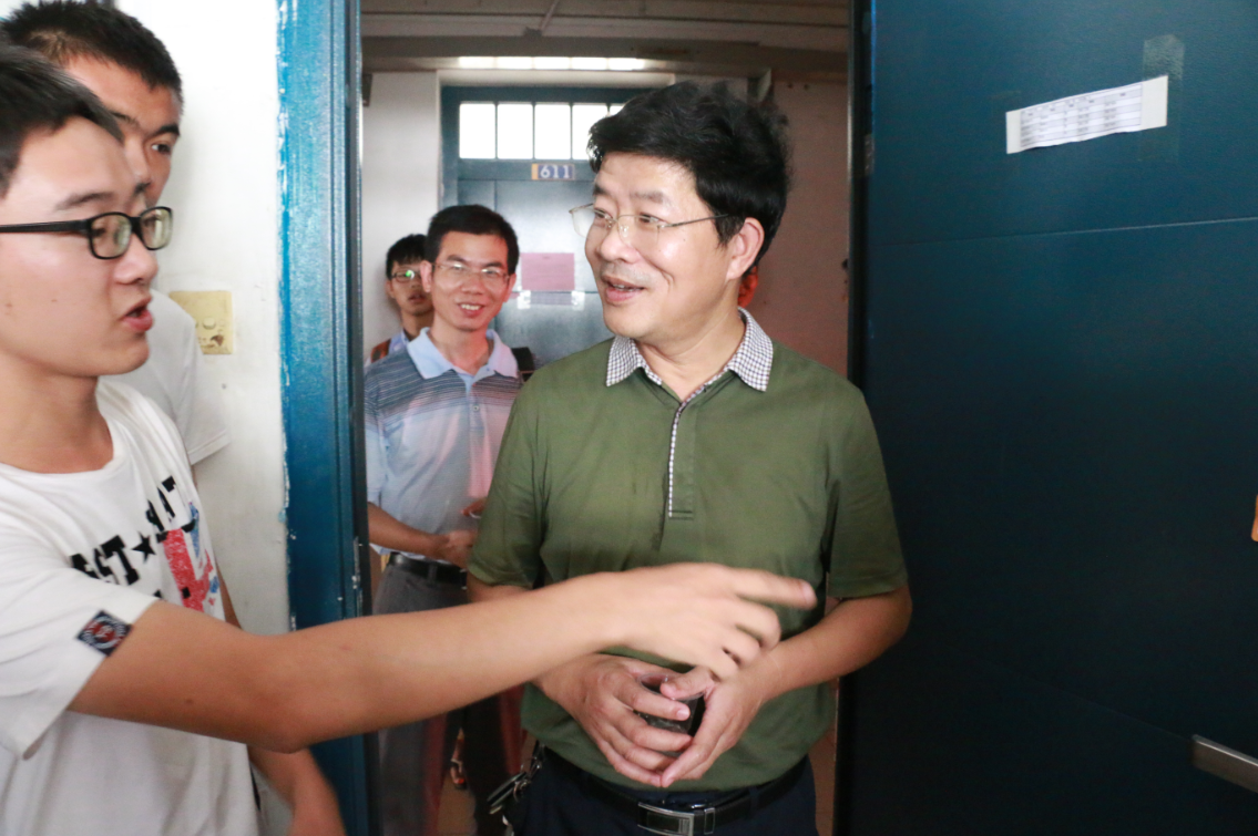 随后,李书记一行前往新生寝室查看新生住宿情况。在新生宿舍,李书记、孙书记与新生及家长们进行了亲切交谈,询问学生的家庭情况,听取他们对入学报到、学校环境、教育教学要求等方面建议意见,耐心解答新生及家长们提出的各种疑问,向他们简要介绍了长沙的气候、饮食和学院的基本状况,希望家长们放心,学院就是学生的家,并激励新生们安心、静心在校学习。