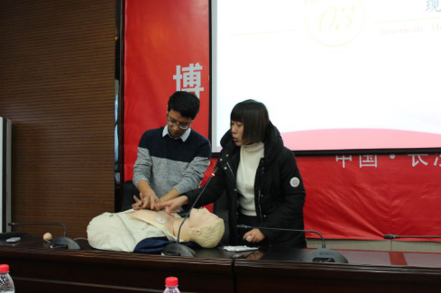 一直以来所做的相关工作,并预祝此次安全文化周活动取得圆满成功。湘雅医学院的王晶同学在开幕式上简要对BLS心肺复苏知识进行了讲解,当场演示了心肺复苏与人工急救技巧。