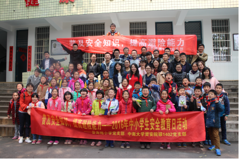 硕士1402党支部在麓山南路岳南路小学开展安全教育进校园活动,为岳南路小学小学生们带来了“普及安全知识,提高避险能力”的精彩一课。党支部针对中小学生关键问题——防拐防骗、交通安全、饮食卫生安全、火灾逃生等,以多种多样的形式对小学生们进行了系统性的宣传教育。硕士研究生1402支部党员及预备党员共28人参加了此次的安全教育活动。