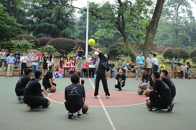 花式篮球队律动的节奏,整齐的步伐,令人炫目的花式篮球,不禁让现场观众爆发出一次又一次的掌声与叫好称赞。青春靓丽的资安院啦啦队宝贝们则用活泼整齐的舞姿向在场观众展现了资安女子的风采。