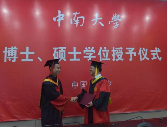 毕业典礼结束后,主此人宣布学位授予仪式正式开始。毕业生们身着学位服有序走上主席台,庄严神圣地接受学位授予。导师们为获得学位的毕业生颁发学位证书,给他们正官拔苏,握手道贺,并与他们合影留念。学位授予期间,有些学生走上台为敬爱的导师整理衣装,并深深鞠躬,获得台下学生的热烈掌声,大家都被这浓浓师生情感动。学位授予仪式结束后,领导、老师和学子们走到采矿楼前坪合影留念,记录下这温馨的一刻。