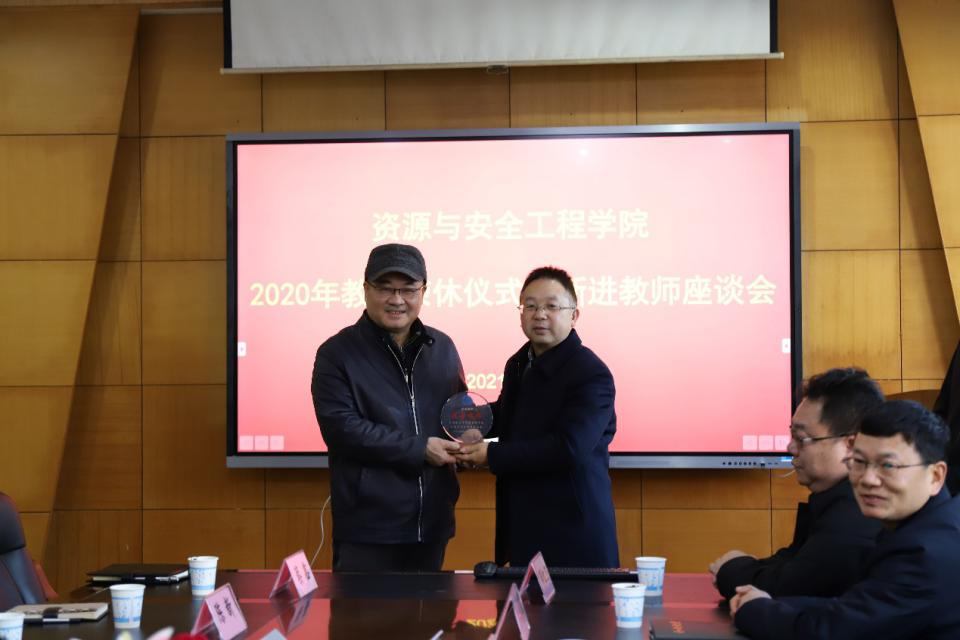 2020年教师荣休仪式暨新进教师座谈会于校本部采矿楼222会议室顺利召开。院党委书记欧旭理、党委副书记马国荣、副院长周子龙、李孜军、邓红卫、黄锐、李地元出席,资安院2020年荣休教师(余健、王方、徐劲之)及新进教师(蔡鑫、陈新、彭平安、孙瀚、李贞、肖碧涵)参加仪式。