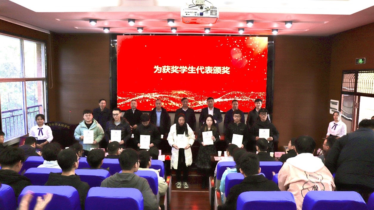 2021年度奖励金评选结果的通知》,张忠生秘书长、设奖企业代表和院领导共同为获奖学生颁奖。