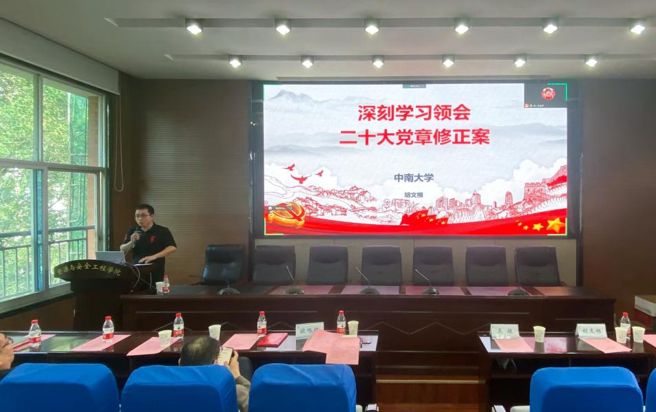 至此,本次预备党员入党宣誓仪式圆满结束。随后,胡文根老师为预备党员讲授党课-《深刻学习领会二十大党章修正案》。胡老师围绕中国共产党党章建设的百年历程、修改原因、修改内容以及修正案对习近平新时代中国特色社会主义思想的定位的阐释和怎么贯彻好党章等五个部分展开讲述。他指出百年的党章建设是中国共产党百年奋斗历程的缩影。此外,胡文根老师还强调,在当今以及今后相当长的一段时间里,学习党的二十大精神并将二十大精神变成我们日用而不绝的东西,是一项极其重要的政治纪录。