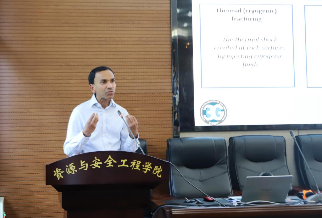 Ranjith教授从非常规能源开采背景、支撑剂的作用机理与取得的成果进行了阐述,详细介绍了其团队在缝内支撑剂的细观破碎机制、嵌入行为以及支撑剂类型比选等方面的最新试验研究成果。在交流环节,Ranjith教授对师生们提出的问题进行了耐心地解答,就压裂支撑剂在非常规能源开采领域的市场需求,经济效益以及环境影响等方面给出了进一步的解答,拓展了师生们对相关领域前沿进展的认识。