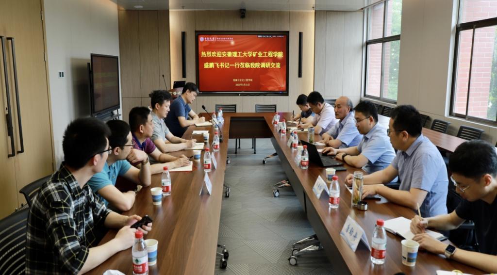 安徽理工大学矿业工程学院书记盛鹏飞首先介绍了矿业工程学院科研、学科和实验室建设等方面的现状。他指出两个学院之间渊源深厚,科研学科交流密切,希望通过本次调研加强两院之间的深度合作,在优化学科布局、促进学科发展、重点实验室建设方面取得收获。安徽理工大学矿业工程学院副院长张向阳随后补充介绍了矿业工程学院的办学理念、人才特色和发展优势等。