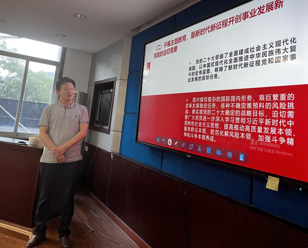 结合主题教育活动的任务目标和走深做实,周子龙院长在党课中提到,我们要以 “学思想、强党性、重实践、建新功”为总要求,把思想和行动统一到党中央决策部署上来,自觉用党的创新理论统一思想、统一意志、统一行动,通过以学促研、以研促学、以查促改,层层递进推动主题教育走深走实。