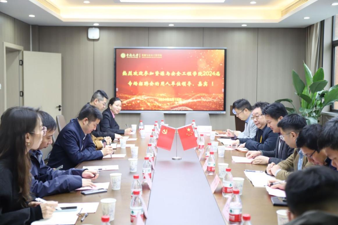 与此同时,学院领导与企业嘉宾在采矿楼222会议室进行座谈。周子龙院长首先代表学院对企业来院交流选才表示热烈欢迎,希望与用人单位携手推进毕业生充分就业、立足行业就业,进一步加强校企双方产学研合作,实现创新链与产业链融合。李超、孙敏之、杨珊、刘志勇、习泳等企业嘉宾先后发言,双方代表围绕本科人才培养需求、共建实习实训基地、研究生招生、学生就业创业等进行了热烈的交流探讨。