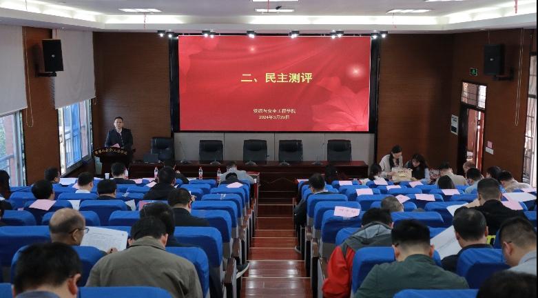 随后,由全体教职工对学院领导班子进行民主测评。秦进书记向教职工介绍了填写民主测评表单的注意事项,传达了本项议程的重要意义,强调本次会议旨在推动建设一支政治过硬、适应新时代要求、具备领导现代化建设能力的领导班子队伍。