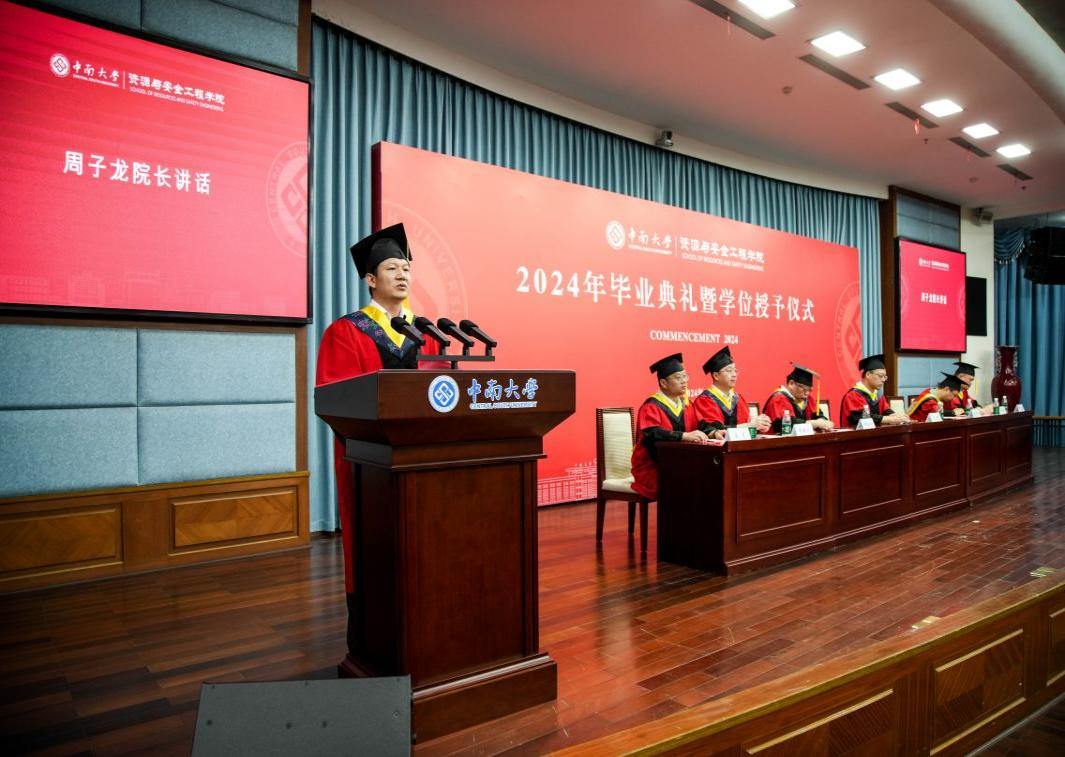 仪式在雄壮的国歌声中拉开序幕。伊始,黄锐副院长和李地元副院长分别宣读了本科生学位授予名单和研究生学位授予名单,邓红卫副院长、尹土兵副院长为学院2024届校友联络员颁发了聘书。随后,秦进书记宣读了2024届优秀毕业生名单并为优秀毕业生代表颁奖。