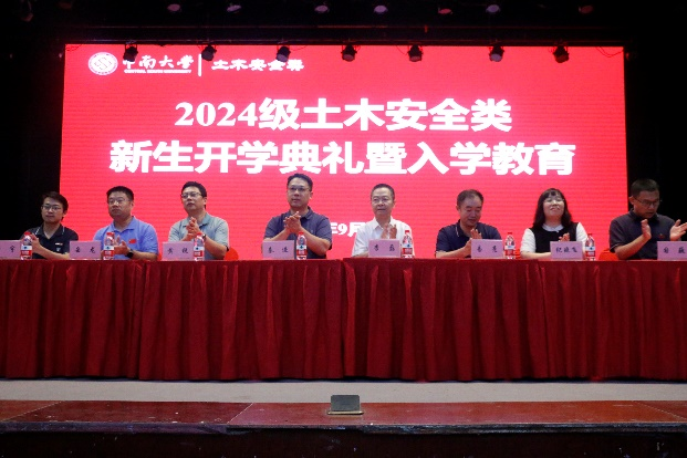 党委书记秦进、副书记岳龙、副院长黄锐、学工办主任郑强伟,土木工程学院党委书记李磊、副书记纪晓飞、副院长易亮、国巍出席会议,教师代表、土木安全类辅导员与2024级全体新生参加。会议由土木工程学院学工办主任杨涛主持。