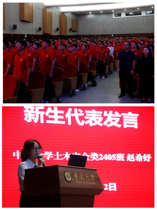 土安2405班赵希妤作为新生代表发言,她表示大学生活充满着机遇与挑战,要珍惜宝贵的青春韶华,努力学习专业知识,成就一身本领,不辜负老师的期望,奋力追逐实现人生理想。