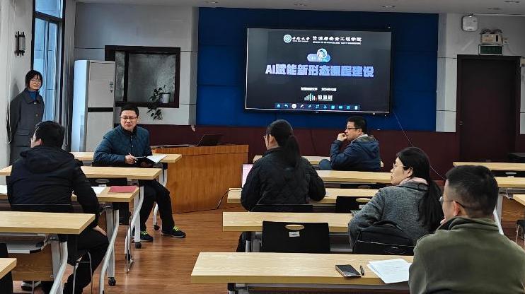 在采矿楼224会议室举行“AI赋能新形态课程与专业建设知识图谱”教研活动。本次活动有幸邀请到上海智慧树课程建设团队及本院优秀教师分享技术,大家齐聚一堂,共同演示新教学技术应用的崭新模式。针对教师们长期关注的科研和教学协同关系,大家认为采用有效的信息化技术能拓展更好的数字化教学空间,促进教研融合,在工科课程中将科研成果同步更新于教学知识图谱。