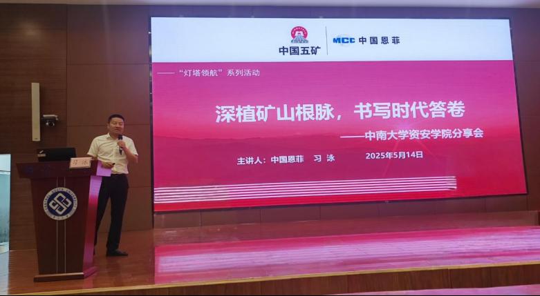 为充分发挥优秀校友的榜样引领作用,助力青年学子明晰职业规划、激发成长动力,学院于2025年5月14日在潇湘校区毓秀楼238成功举办“灯塔领航——优秀校友与青年学子面对面(第三期)”活动。本次活动邀请到中国恩菲工程技术有限公司长沙分公司负责人习泳先生,以“深植矿山根脉,书写时代答卷”为主题作报告。学院党委副书记岳龙、高峰教授、辅导员代表以及学生代表共计100余人参加,本次活动由黄佳星主持。